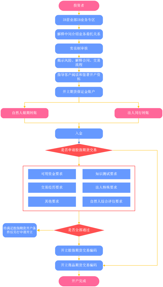 符合要求的投資者,可攜帶開戶資料,到東海證券指定營業(yè)部按照下圖所示開戶流程辦理期貨開戶手續(xù)。