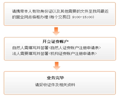 1、開立股東賬戶:投資者可到我營業(yè)部申請開立上海、深圳股東賬戶。根據(jù)非現(xiàn)場開戶的要求,亦可采用見證或網(wǎng)上開戶的方式。