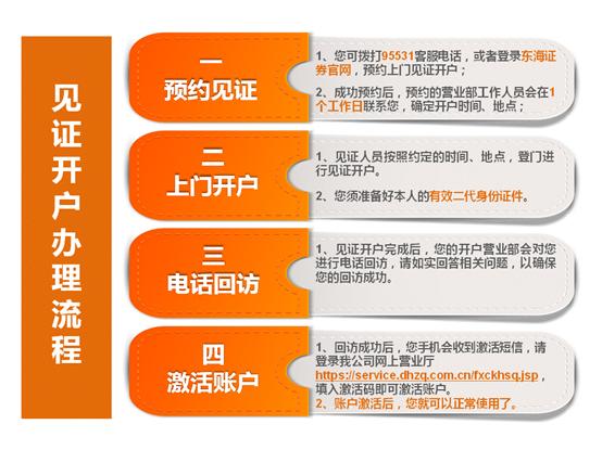 網(wǎng)上開戶是指投資者(目前僅限于境內(nèi)自然人)通過東海證券官網(wǎng)網(wǎng)上開戶系統(tǒng)申請開立資金賬戶、證券賬戶,以及辦理客戶資金第三方存管的業(yè)務(wù)。目前,我公司網(wǎng)上開戶業(yè)務(wù)分為理財開戶、新開戶及轉(zhuǎn)戶。