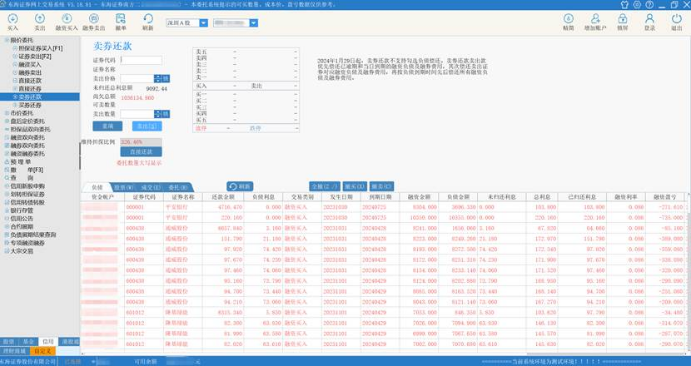 八、融券雙向委托:(僅同花順版客戶端有此菜單)