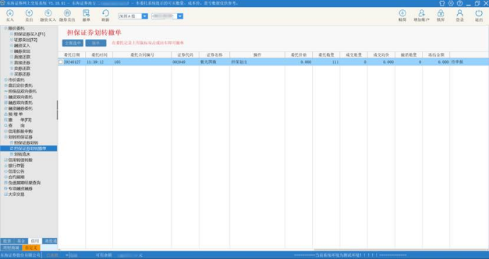 2、“擔(dān)保證券劃轉(zhuǎn)”指令在交易時間可以撤單。