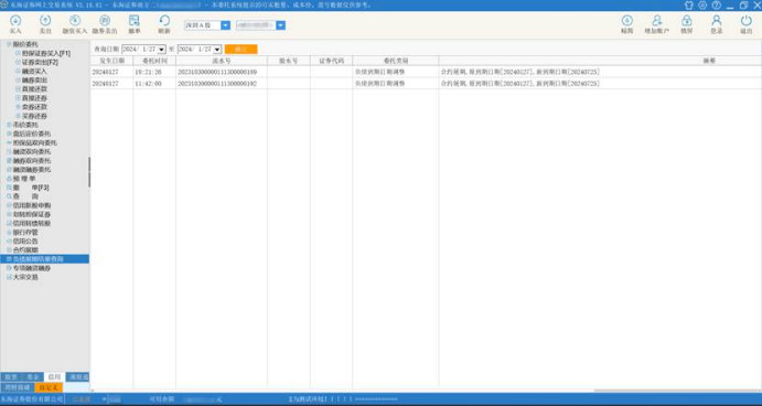 七、融資雙向委托:(僅同花順版客戶端有此菜單)
