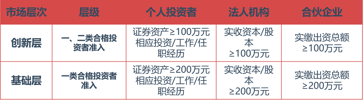 一類合格投資者:創(chuàng)新層、基礎(chǔ)層