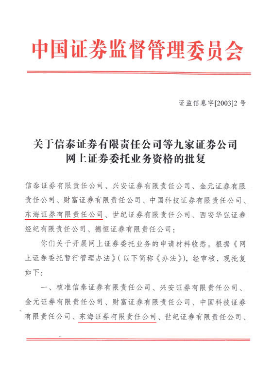 | [ 證監(jiān)會核準網(wǎng)上證券委托業(yè)務(wù)資格 ] [互聯(lián)網(wǎng)證券業(yè)務(wù)試點資格] [蘇ICP備05003631號-1]